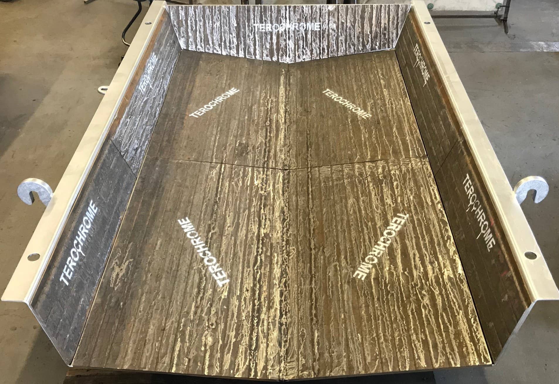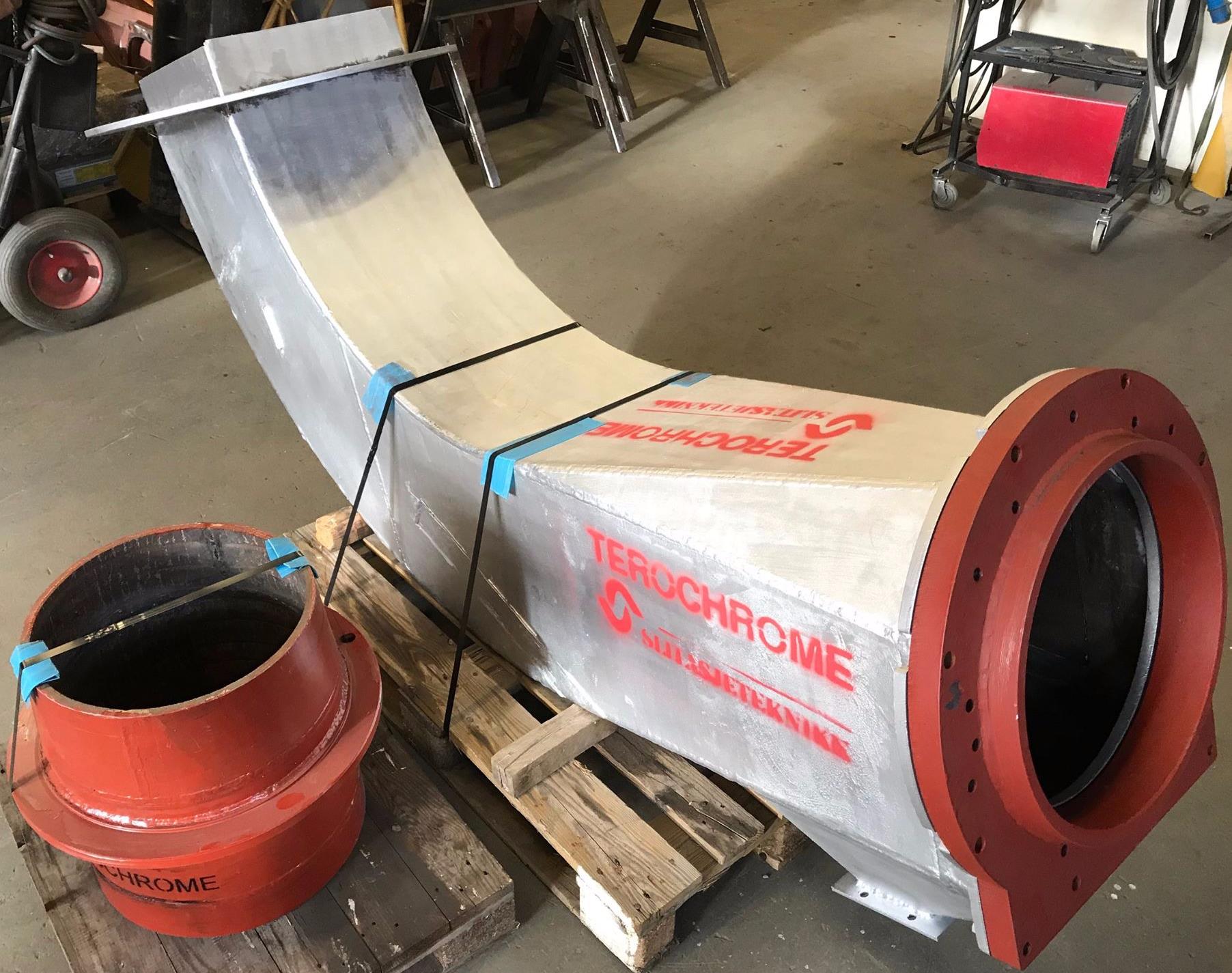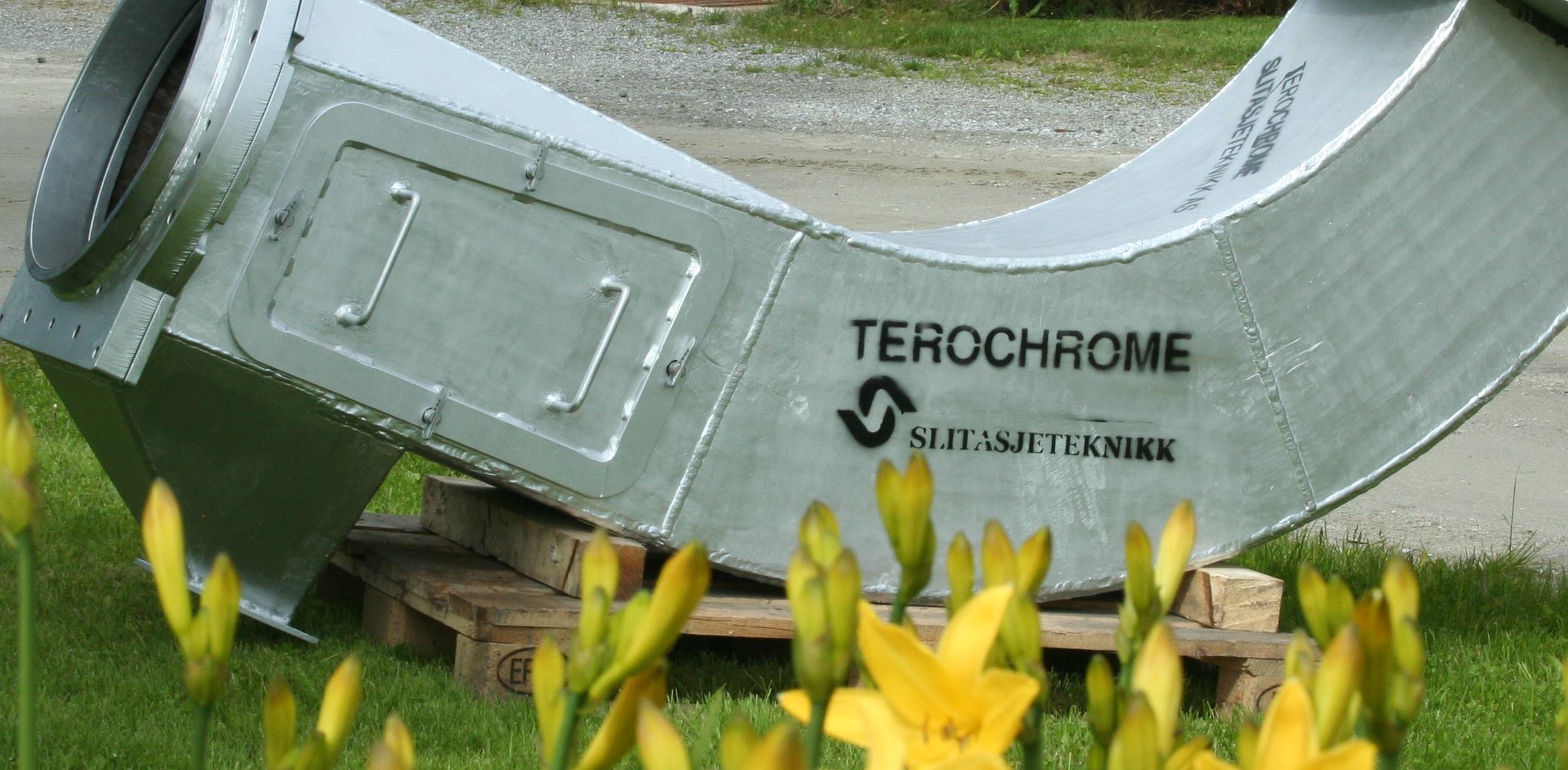 Slitasjeteknikk AS produces the unique abrasive resistant material Terochrome. The material consists of a steel plate/stainless steel/acid resistant steel plate, with a thick chromium carbide coating.